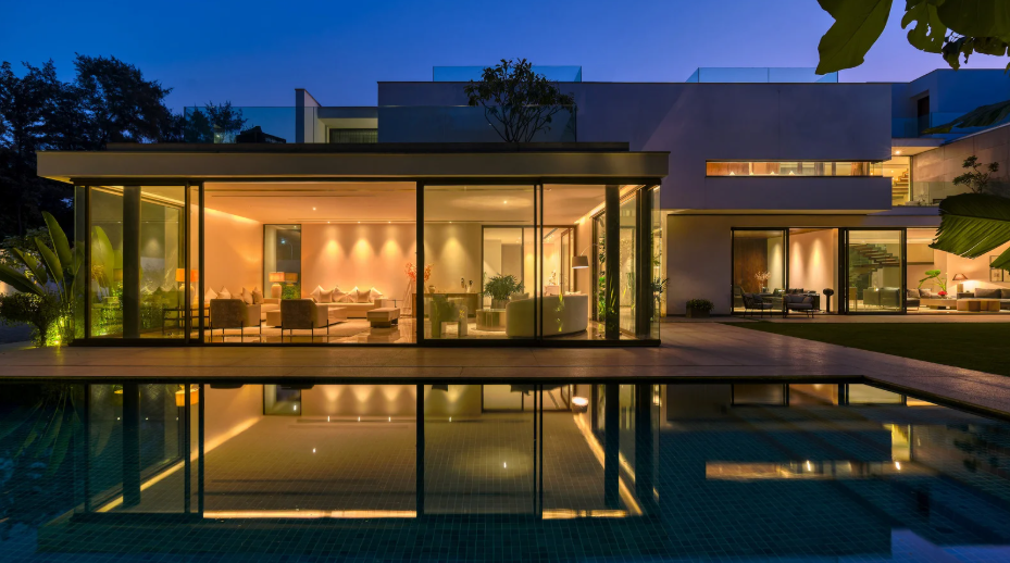Modern design emphasizes logic, analytical precision, and functionality. The philosophy was that form should follow function. As a result, modern homes are characterized by clean lines, minimal decoration, and an emphasis on horizontal composition. The structures often feature low, flat roofs and large expanses of glass to connect the indoors with the outdoors. Inside, the decor leans towards minimalism, utilizing natural materials like wood, leather, and teak. The color palette typically includes warm neutrals and earthy tones, creating a grounded, serene atmosphere.